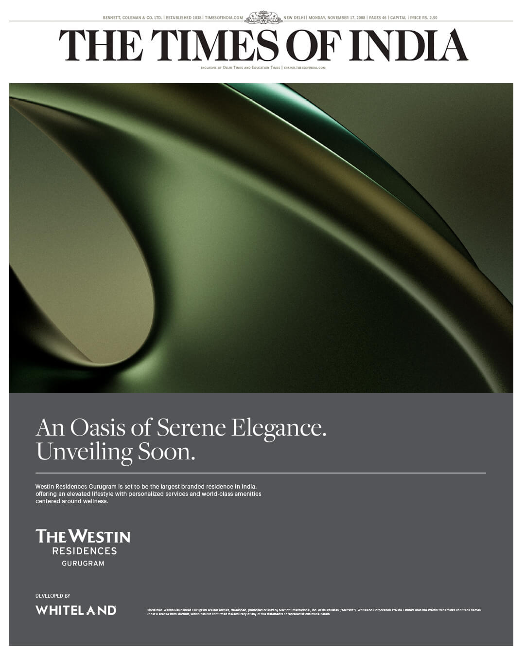 “We are delighted to have signed an agreement with Whiteland to introduce the first Westin Residences to India. Their pioneering spirit and unwavering commitment to excellence, combined with Marriott’s global experience in operating branded residences, will set a benchmark in premium living in India and create homes where residents can be the best versions of themselves,” said John Hearns, Senior Vice President, Global Residential Operations, Marriott International.